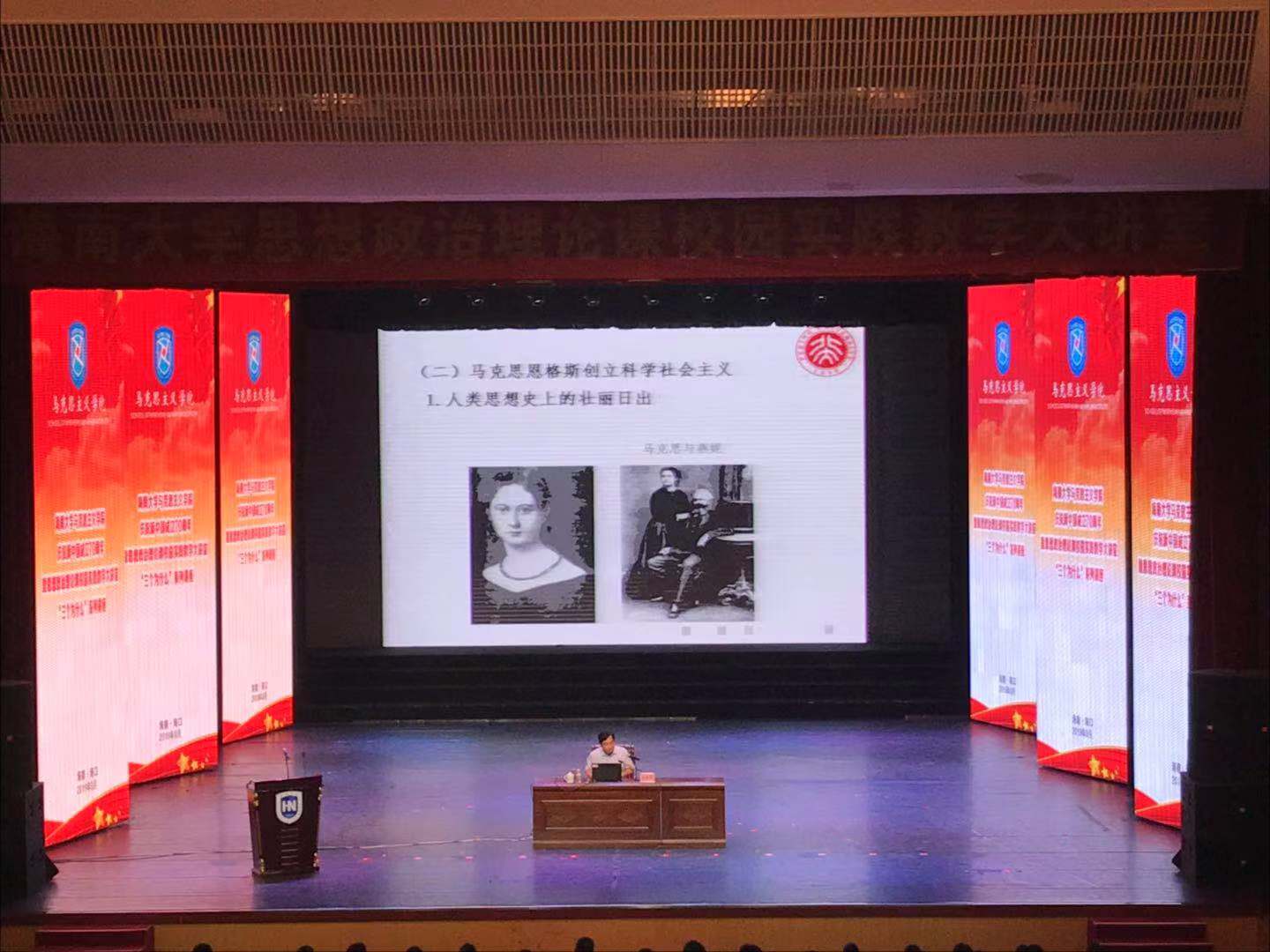 402永利集团官网入口党委书记武耀廷,副校长胡新文、王崇敏、梁谋、叶光亮,校党委常委、组织部部长韩淑梅,校党委常委、宣传部部长谭勇,各学院书记、副书记,全校各党支部书记,402永利集团官网入口思想政治理论课教师,2018级部分本科生共计1000余人聆听讲座。讲座由马克思主义副院长王善主持。