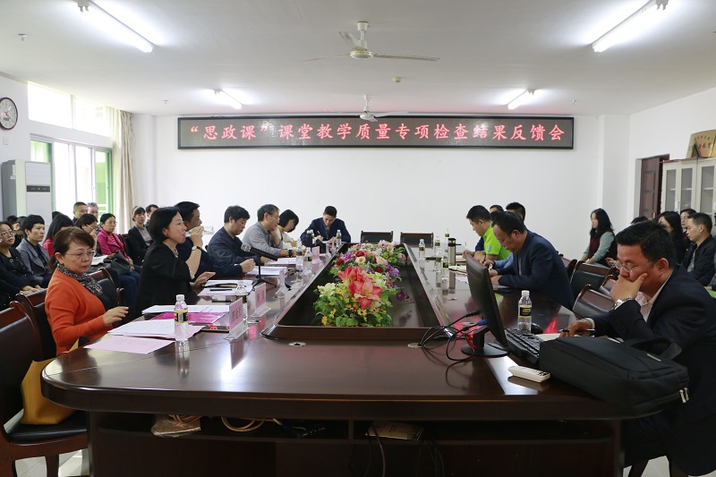 12月10日下午,402永利集团官网入口在社科楼A-311顺利召开“思政课”课堂教学质量专项检查结果反馈会。副校长胡新文、教学质量评估中心郭立萍主任、教学质量评估中心副主任周兰愉、教学督导代表周星、霍世清,评估中心工作人员符金万、陈雨菡,永利集团官网副院长王善、副院长吴朝阳,党委副书记张井富以及全体马院教职工出席会议。会议由副院长吴朝阳主持。