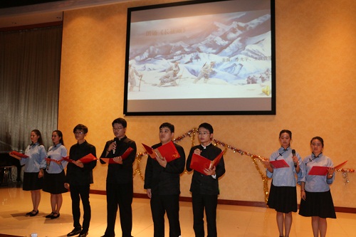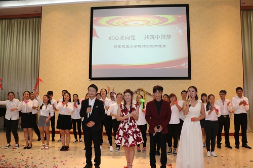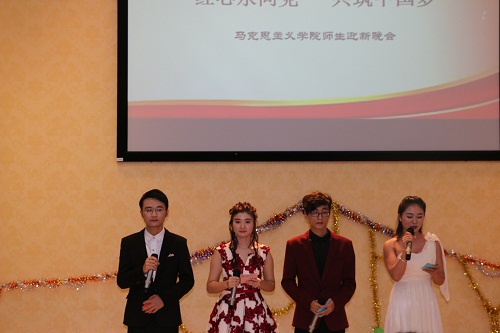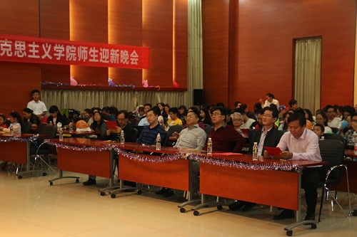 12月26日晚,402永利集团官网入口在思源学堂多功能厅举行以“红心永向党,共筑中国梦”为主题的迎新联欢晚会,学院党委书记段捷频、院长李德芳、副院长李辽宁出席,全体师生共同参加晚会。