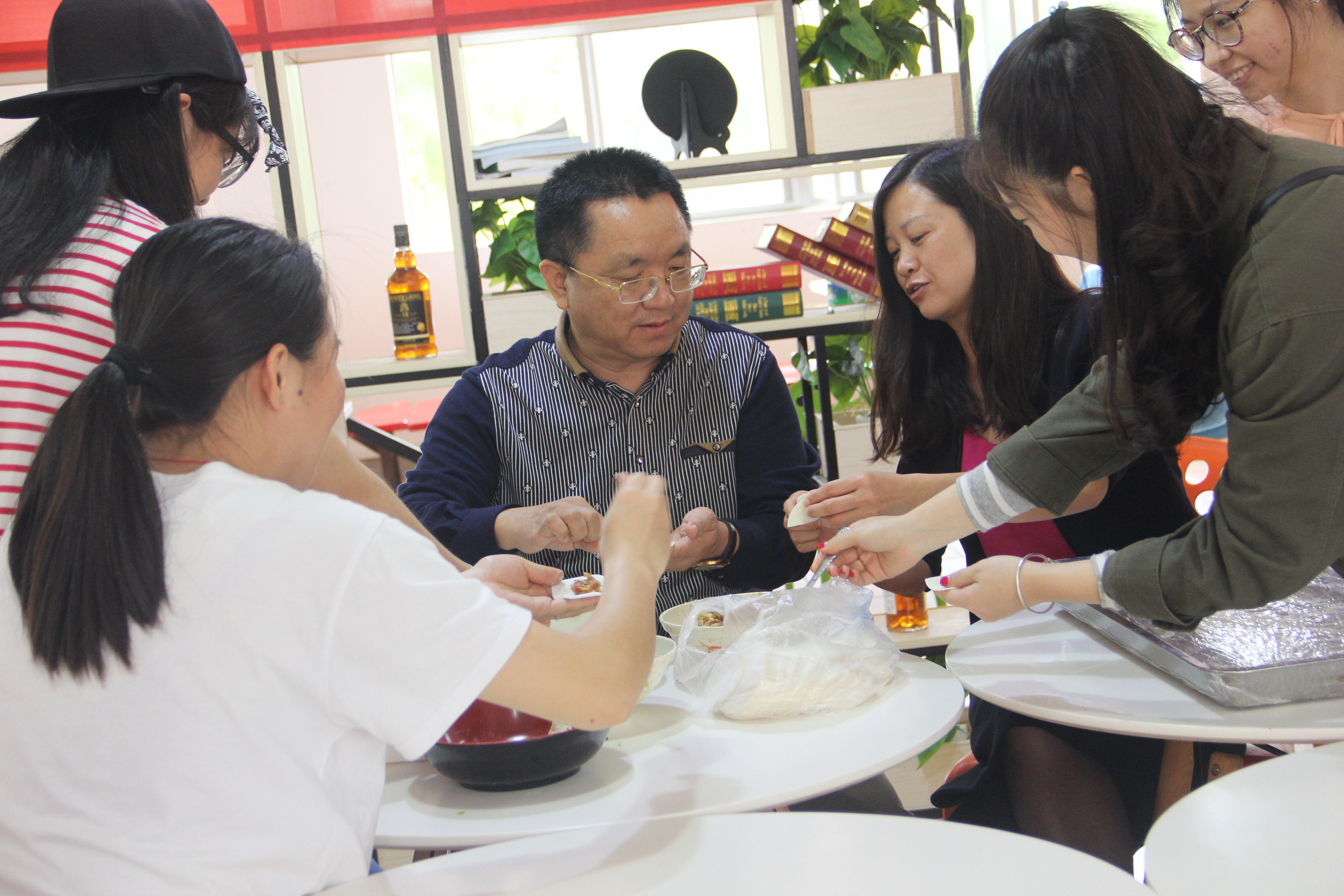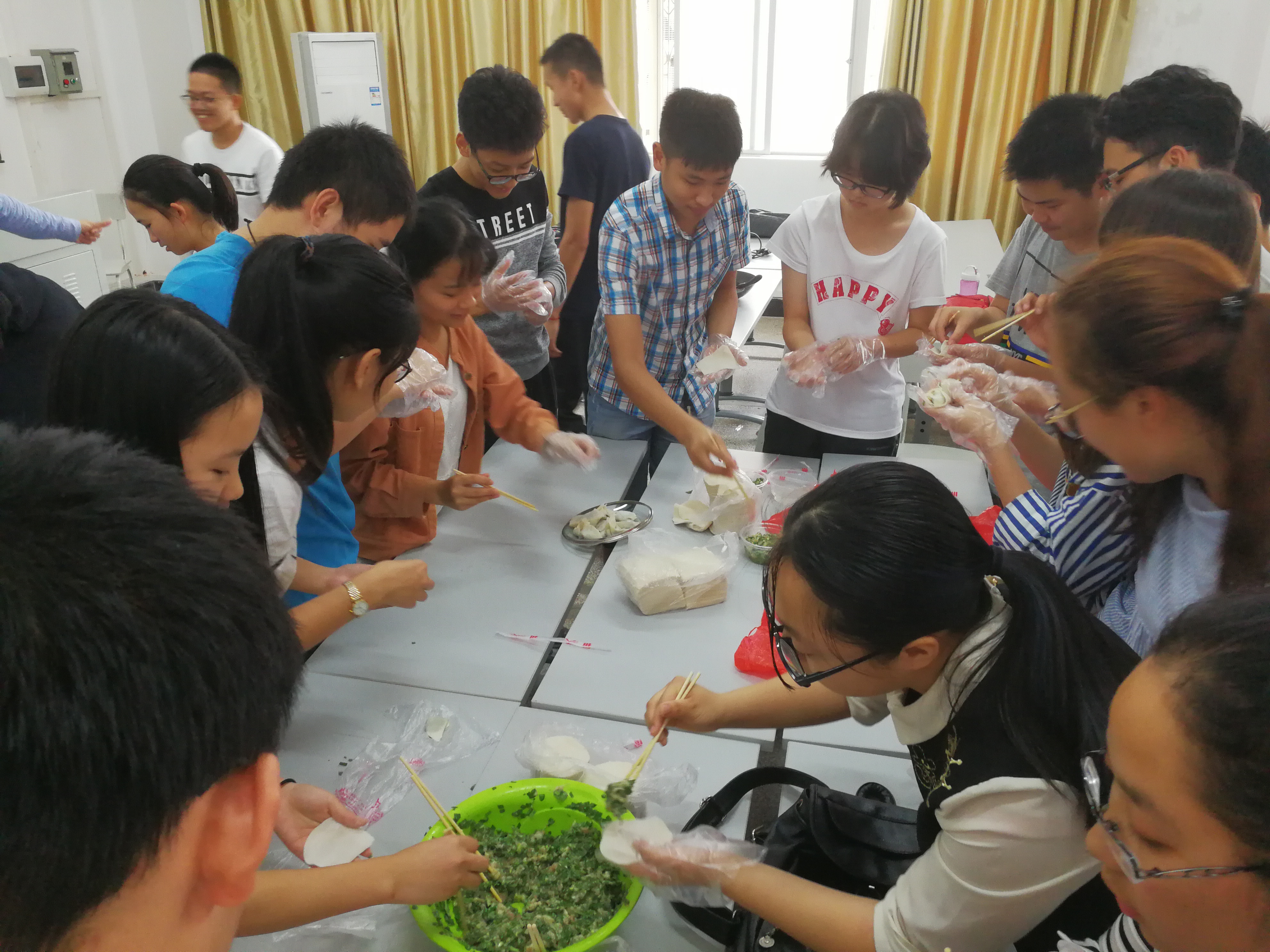 此次活动现场非常活跃,形式新颖有趣,同学们与领导老师亲切交流,互帮互助,共同学习,亲自动手擀面皮、包饺子,现场气氛十分温馨。全院学生广泛参与,加强了本科生与研究生的交流沟通,展现了同学间的浓浓情谊,加深了同学间的理解和友谊,发扬了402永利集团官网入口爱生活爱同学的院风,进一步凝聚了马院力量。