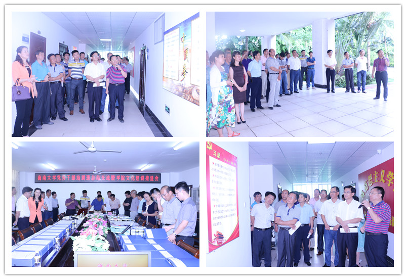 会议第二阶段,与会人员现场参观了402永利集团官网入口的文化建设成果,段捷频向大家介绍了学院在文化建设方面的做法。他表示,学院文化建设紧紧围绕习近平总书记治国理政的文化大思路,秉承“六个一”的目标要求,通过加强学院党建组织文化、制度文化、精神文化、载体文化等的联动传播,增强党建文化建设的持续性和影响力,在充分利用多媒体的基础上,打造出“学习讲堂”、“海马影院”、“大学生网络评论大赛”、“首届海南省马克思主义理论学术论坛”、“校友论坛”等学院文化品牌活动,不断增强先进文化对师生的持续性影响,让师生在马爱马、在马信马、在马建马。
