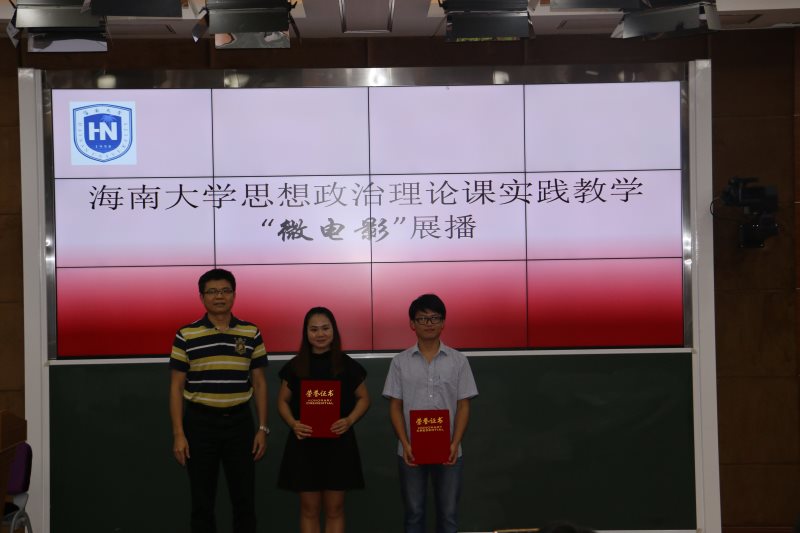 为贯彻落实中宣部、教育部《普通高校思想政治理论课建设体系创新计划》,进一步完善我校思想政治理论课“一主三辅”实践教学模式,5月16日,永利集团官网于2教211教室开展2017年402永利集团官网入口思想政治教育理论课校园实践教学——微电影展播活动。海南省教育厅思政处处长文强、402永利集团官网入口教务处处长张云阁出席活动并为获奖节目颁奖。402永利集团官网入口院长李德芳、党委书记段捷频、副院长李辽宁,贺尧夫主任以及402永利集团官网入口部分师生代表参加活动。