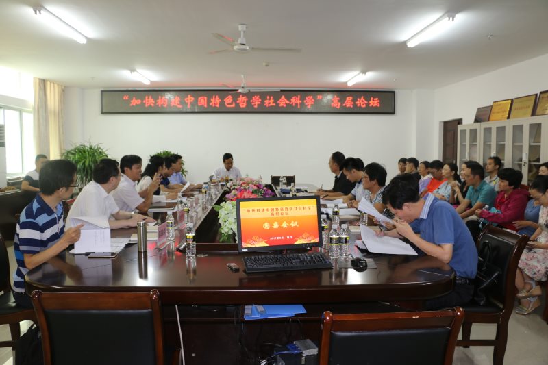 2017年6月22日,“加快构建中国特色哲学社会科学”高层论坛在402永利集团官网入口召开。北京大学陈占安教授,清华大学吴潜涛教授,海南省委教育工委专职副书记麦浪,海南省社科联专职副主席李星良,402永利集团官网入口副校长王崇敏出席,来自全国各大高校的领导和近40名专家学者参加此次会议。会议开幕式由402永利集团官网入口党委书记段捷频主持。