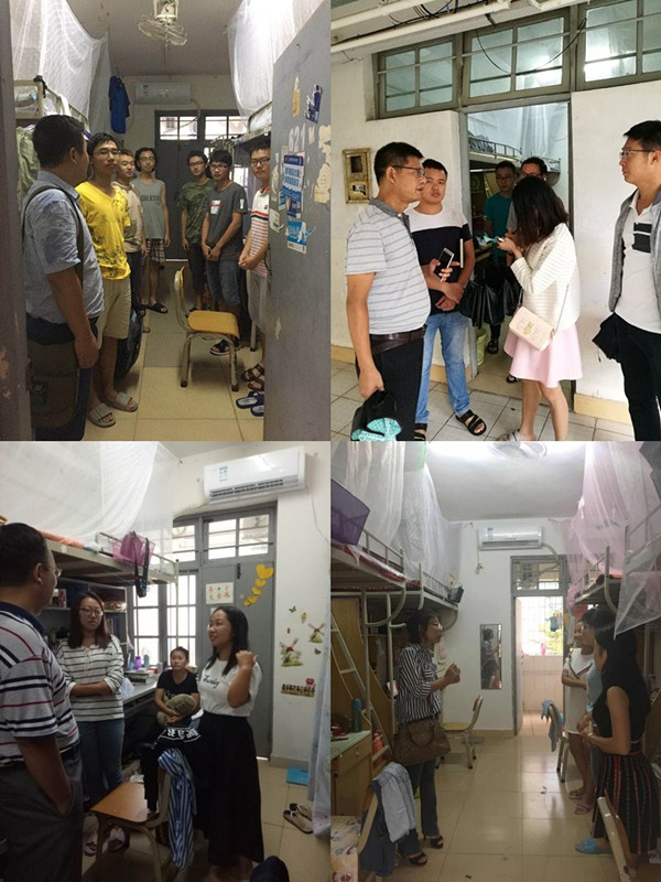 会后,院长李辽宁,学院党委副书记张井富,副院长杨娜、王善,学院辅导员、班主任、兼职辅导员和学生干部分别开展宿舍安全排查工作,现场了解相关情况,进行在校人数统计,深入了解学生应对台风的情况与宿舍安全状况,加强对学生的安全教育。