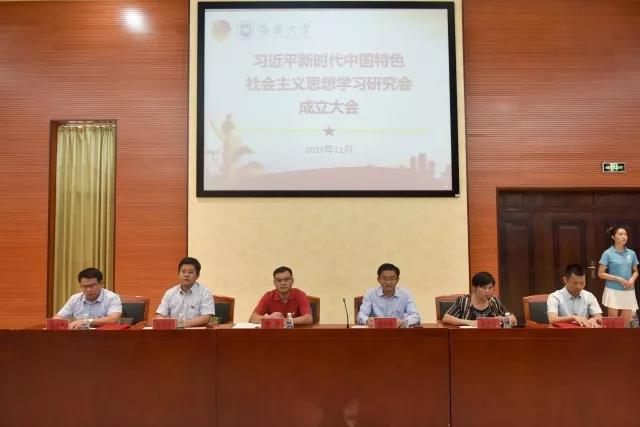 为深入学习宣传贯彻党的十九大精神,不断加强习近平新时代中国特色社会主义思想的学习和研究,为青年学生提供交流、学习、研讨的平台,11月3日下午,402永利集团官网入口习近平新时代中国特色社会主义思想学习研究会成立大会在学校思源学堂多功能厅隆重召开。402永利集团官网入口党委常务副书记廖清林,校党委常委、宣传部部长谭勇,402永利集团官网入口党委副书记张井富出席大会。会议由校团委书记林洪冰主持。