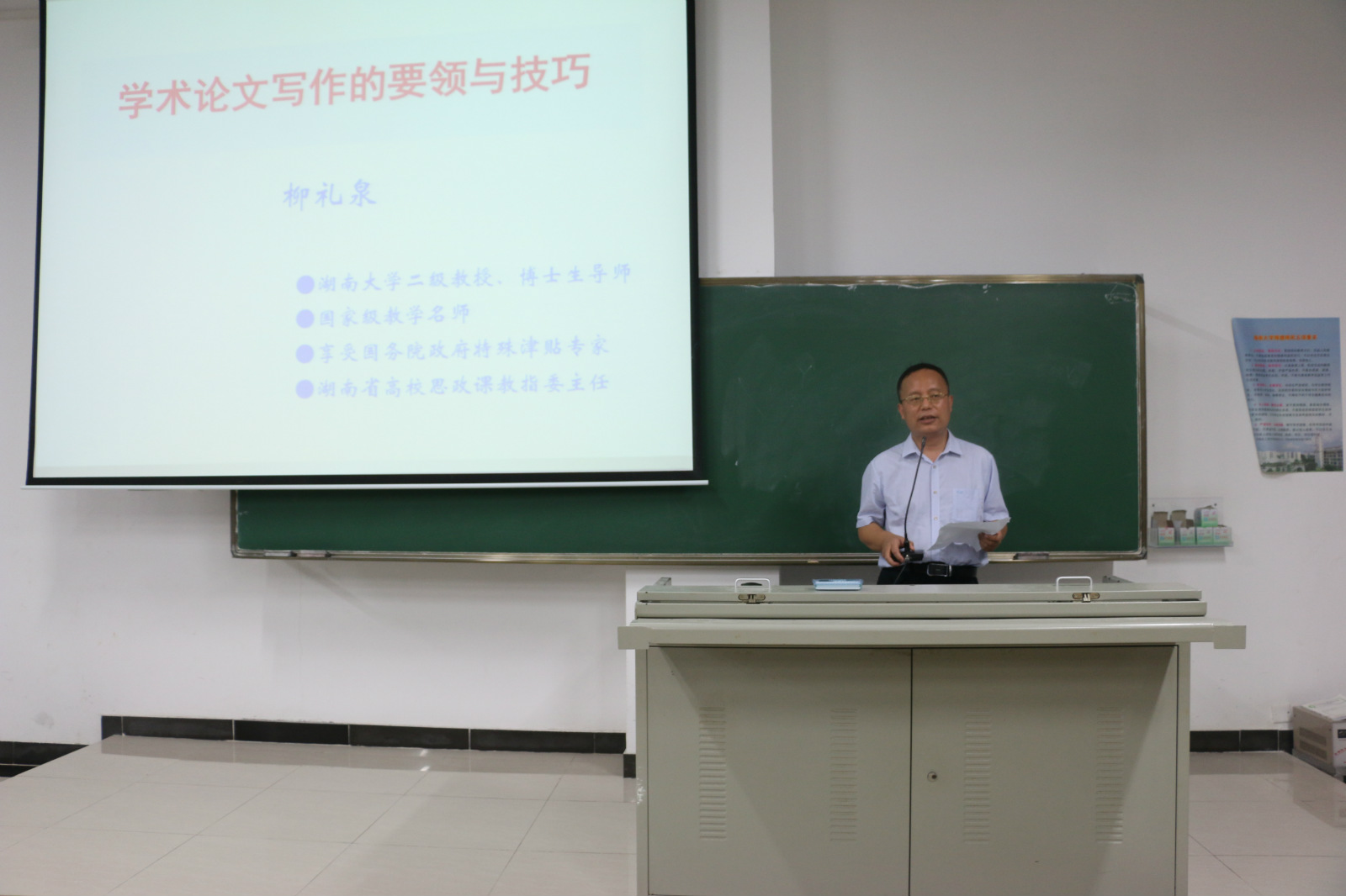 4月13日晚,402永利集团官网入口第六期新时代论坛在5号教学楼111教室举举行,湖南大学柳礼泉教授应邀为永利集团官网全体学生作题为“学术论文写作的要领与技巧”的学术报告会。报告会由副院长王善主持。