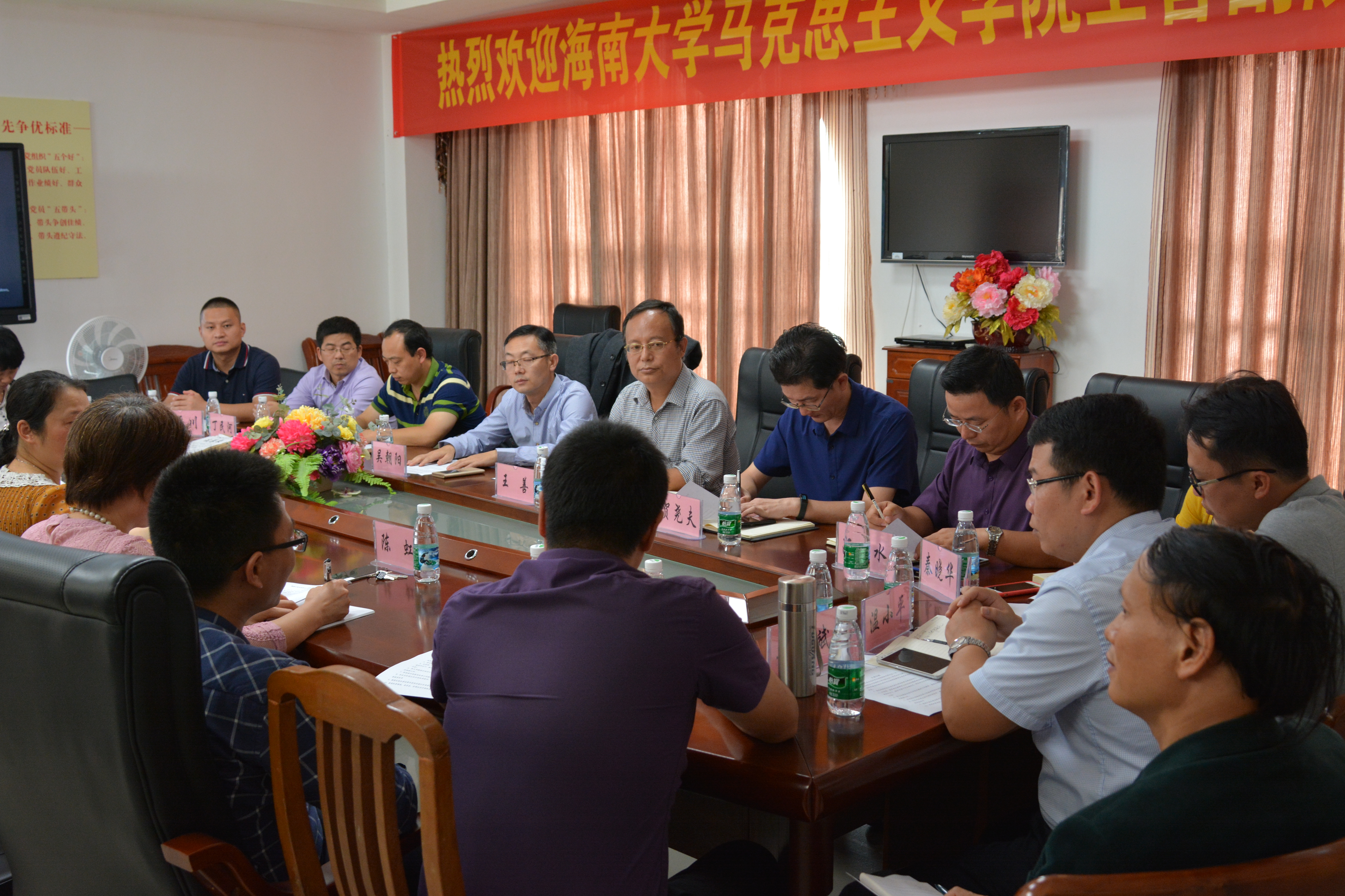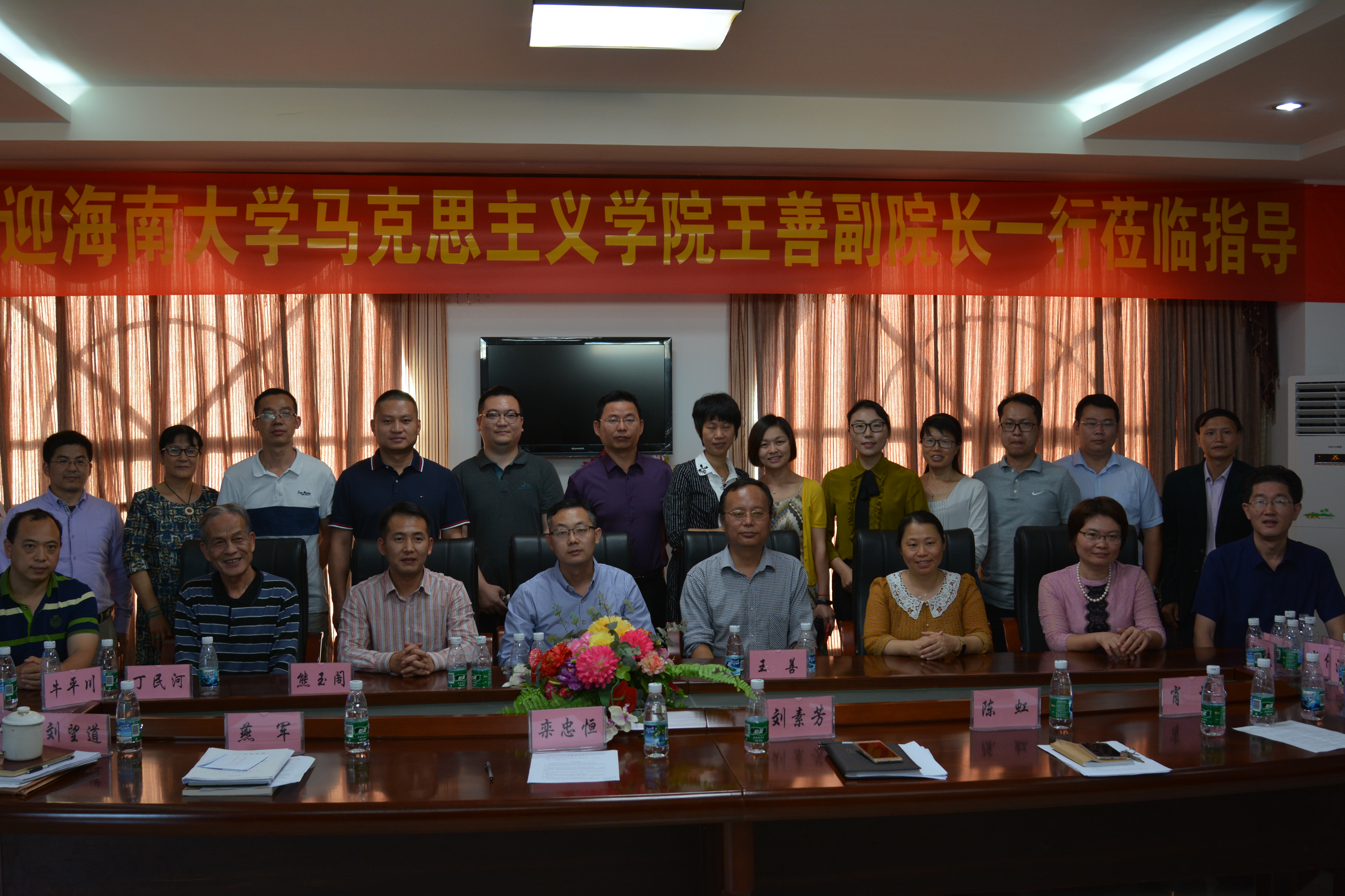 近期,402永利集团官网入口副院长王善、教学委员会副主任贺尧夫带领思想政治理论课五个教研部负责人和部分骨干教师等一行14人赴海口经济学院马克思主义院进行教学交流研讨活动。402永利集团官网入口教务处副处长吴朝阳、教务系统负责人熊玉阁、教务科科长丁民河也一同参加了此次活动。