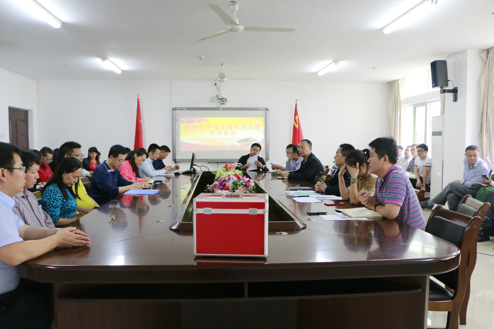 4月17日下午,402永利集团官网入口在学院会议室召开全体教职工大会。会上,院党委书记段捷频传达学习了习近平总书记在庆祝海南建省办经济特区30周年大会上的重要讲话、《中共中央国务院关于支持海南全面深化改革开放的指导意见》和省委常委会(扩大)会议精神,并就各党支部全面开展相关学习活动作出具体安排和部署。