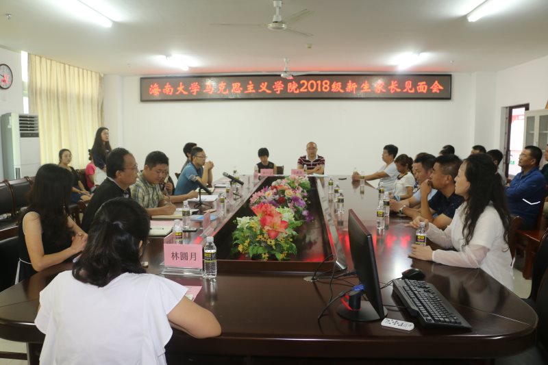 段捷频在新生见面会上讲话。首先,他代表学院对新生家长的到来表示热烈欢迎和衷心感谢。随后,他从学院历史沿革、组织机构、师资队伍、学科建设、专业前景和人才培养模式等方面做了详细介绍。他指出,习近平总书记4.13重要讲话和中央12号文件指出要支持海南建设自由贸易试验区(港),这赋予了海南全新的发展定位和重要的历史机遇。402永利集团官网入口也正处于“部省合建”和世界一流学科建设的重要历史时期,学校正全面落实立德树人根本任务,不断提升人才培养质量。站在发展的新起点,学院将深入贯彻落实习近平新时代中国特色社会主义思想和党的十九大精神,主动服务国家战略、全力配合学校建设,扎实抓好人才培养这一核心任务,为国家和社会、学校和家长培养更多的优秀的马学科人才,请家长们放心,并对学院发展充满信心。同时也希望同家长们达成共识,家校联动,协同育人,共同培养有担当,有作为的社会主义合格建设者和可靠接班人。