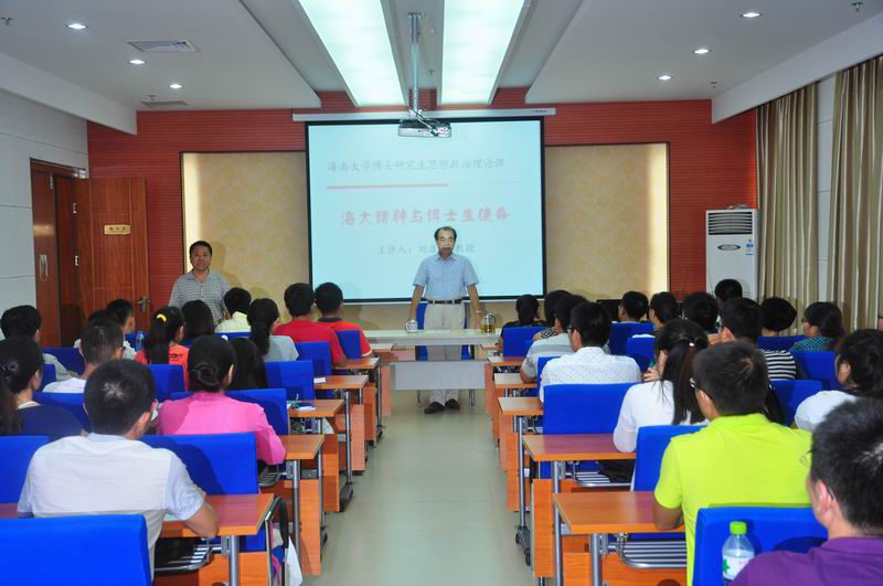 9月18日下午,校党委书记刘康德教授走上研究生思想政治理论课讲坛,为我校2014级全体博士研究生作题为“海大精神与博士生使命”的讲座。《中国马克思主义与当代》课程负责人张云阁教授主持讲座。校党委办公室主任梁谋,402永利集团官网入口党委书记段捷频、副院长杨娜旁听了讲座。 刘康德教授采用校史馆现场解说、主题演讲和师生互动相结合的授课形式,从402永利集团官网入口的历史沿革讲起,向同学们讲解原两校师生在推进学校发展过程中传承下来的主要精神;结合中国传统文化和新402永利集团官网入口的建设发展,向同学们诠释了“海纳百川、大道致远”的校训和“自强敬业、厚德弘毅”的校风,进而向同学们全方位、深层次地解读402永利集团官网入口精神。 刘康德教授指出,博士研究生接受的是大学最高层次的学历教育,要清楚自己的角色定位,作为精英教育对象,更要担负起自己所应承担的使命,努力成为德才兼备的社会主义建设者和可靠接班人。他强调,全力提升学生的社会竞争力和提升教师的社会影响力是学校的办学理念,他希望全体博士研究生能够在接下来三年的时间里锻炼自己的思维力、学习力、亲和力、意志力、适应力、实践力和创新力等能力,以全面提升自己的社会竞争力,促使提高学校的科技创新能力以及人才培养质量,促进内涵式发展,为建设全国百强高校贡献一份力量。 在互动交流环节,同学们认为,刘康德书记为2014级博士生上第一课,体现了校党委和校领导对研究生教育的高度重视,表达了一个师者和长者对莘莘学子的深切关怀和殷切希望,听了刘书记的讲课,很受教育、很受鼓舞,同时也增强了荣誉感、使命感和责任感。同学们表示,将传承和弘扬海大精神,努力提升自己的社会竞争力,承担起博士生应有的使命和责任,给学校和自己交出一份满意的答卷。