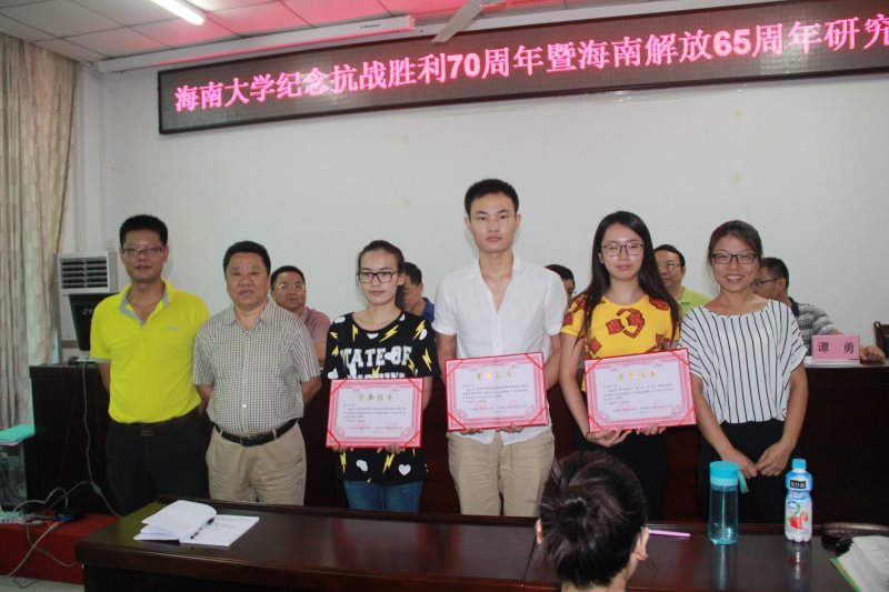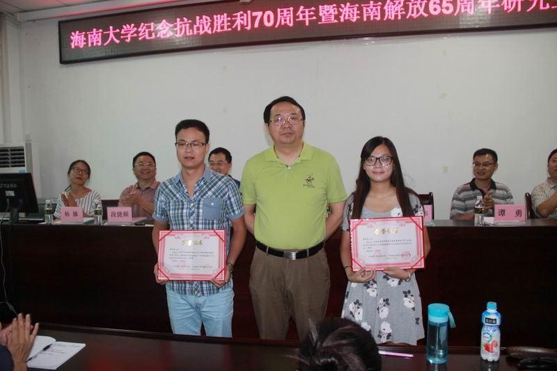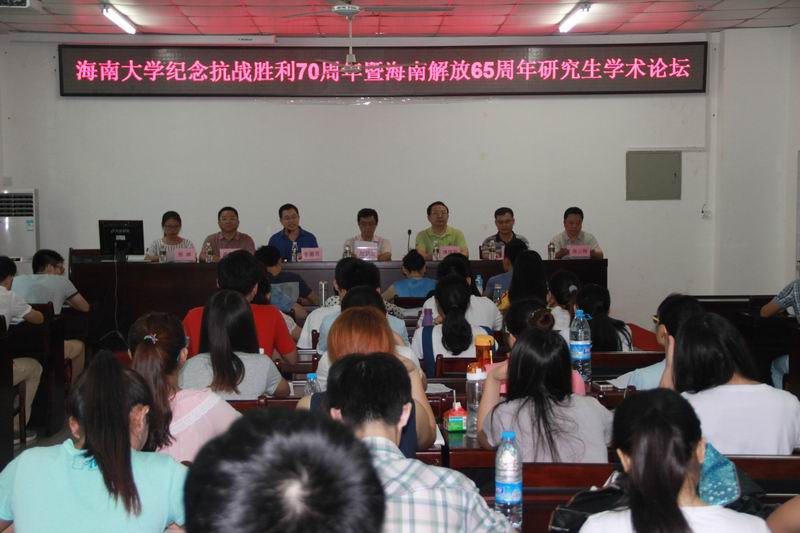 6月30日上午,由402永利集团官网入口党委宣传部、研究生工作部主办,402永利集团官网入口承办的402永利集团官网入口纪念抗战胜利70周年暨海南解放60周年研究生学术论坛在社科群楼A111隆重举行。海南省社科联党组书记、主席赵康太,402永利集团官网入口副校长傅国华,宣传部副部长谭勇,402永利集团官网入口院长李德芳、院党委书记段捷频、副院长张云阁、杨娜等领导出席论坛开幕式。论坛开幕式由李德芳教授主持。 省社科联主席赵康太教授作论坛主题报告。他围绕“冯白驹与海南解放——纪念海南解放65周年”这一主题,以开阔的视野、严谨的治学态度,客观地分析海南解放的历史过程,对冯白驹领导的琼崖纵队在解放海南岛过程中的地位和作用进行了实事求是的评价,令人耳目一新。 副校长傅国华在论坛开幕式上致辞。他代表学校对论坛的顺利召开表示热烈祝贺,他说,抗日战争是中华民族历史上最伟大的卫国战争,是中国人民反抗日本帝国主义侵略的正义战争,也是中国近代以来抗击外敌入侵第一次取得完全胜利的民族解放战争,举办纪念抗日战争胜利70周年暨海南解放65周年研究生学术论坛具有重要意义。他指出,结合时事举办的研究生学术论坛,坚持正确的政治导向,非常有思想政治教育意义,同时也能够很好的调动研究生的科研热情,有助于研究生能力培养。他希望,由402永利集团官网入口发起,并且已经持续举办了三届的文科类研究生学术论坛,能够坚持办下去,不断提高质量、增强影响力,为提升我校研究生学术科研水平做出积极贡献。 本次研究生学术论坛共收到参会论文27篇,经过专家组对所有论文进行公正评审,评出一等奖2篇、二等奖3篇、三等奖3篇。 樊红潮、廖桂真、杨倩、葛子龙等研究生代表在论坛上做主题发言。402永利集团官网入口副院长张云阁、杨娜分别对同学们的论文和发言进行了点评。