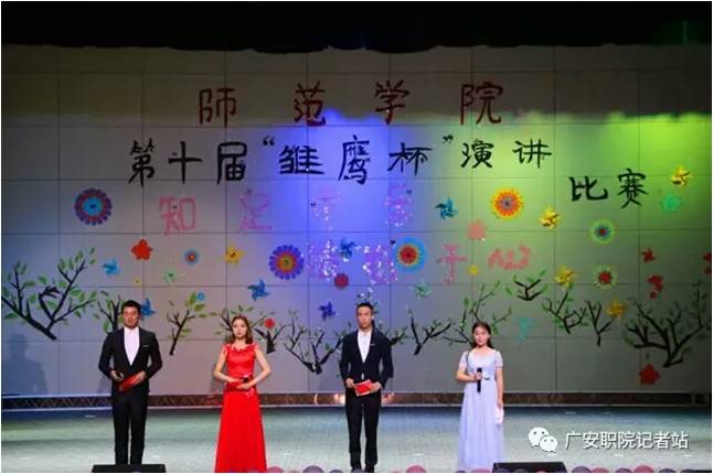 5月11日,pp电子官方网站入口雏鹰口才交流协会在杏坛举办了以“知足常乐,感恩于心”为主题的第十届“雏鹰杯”演讲比赛。pp电子官方网站入口副院长吴小平、学生管理科科长杨刚、社团指导老师陈荟瑾等应邀担任此次活动的评委。