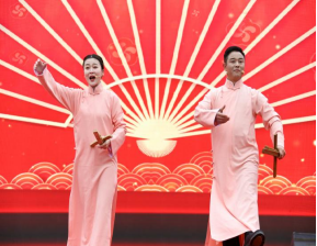 2月20日至22日,由中国曲协,山东省文联,滨州市人民政府主办的“乡风曲韵”2024胡集书会全国美丽乡村优秀曲艺节目展演,在孙子故里山东惠民县胡集镇举办。pp电子官网教师胡俊杰与广安区文化馆事业干部、广安区曲协副主席张倚菡共同表演的曲艺节目——四川金钱板《高兴不高兴》受邀参加了此次展演活动。节目《高兴不高兴》主要讲述二十大召开后老百姓切身感受到党中央反腐力度和对廉洁新风的赞美与颂扬,表演过程中他们将四川金钱板的打板、斗板、节奏、唱腔等各项特色技艺展现得淋漓尽致,用幽默风趣的表演赢得现场观众热烈的掌声。