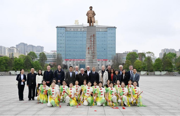 2024年是中法建交60周年、中法文化旅游年,也是广安市—蒙达尔纪市建立友好合作关系的开局之年。在广安市委、市政府的关心和支持下,4月10日下午,法国蒙达尔纪市市长伯努瓦·迪容一行人来校访问交流,并到我院参观体验中华传统文化艺术。广安市副市长蒋春华,学校党委副书记、校长王义全,党委委员、副校长袁驰陪同参观。