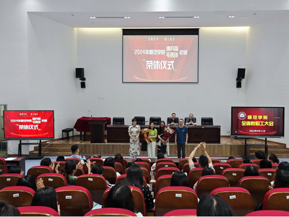 最后,学院为本学期即将退休的唐月英和毛西琼老师举行了荣休仪式。pp电子官方网站入口全体人员将接好她们递过来的“交接棒”,传承学院一以贯之的光荣传统,彰显新时代的崭新风貌,在新征程上续写pp电子官方网站入口的华丽篇章。