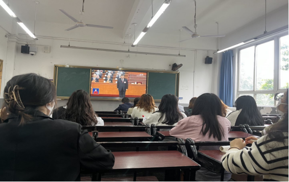 中国共产党第二十次全国代表大会于10月16日在北京召开。pp电子官方网站入口在明德楼201教室组织集中收看,pp电子官方网站入口党总支书记、副书记、党员教师代表和学生代表近30人参加。