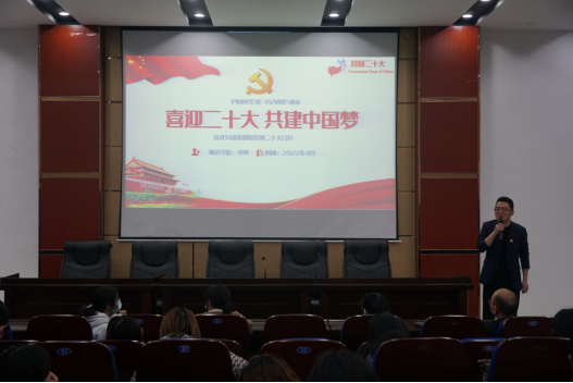 为了更好的增强党员同志的思想政治觉悟,以更优异的成绩迎接二十大的召开。根据支部实际,广安职业技术学院pp电子官方网站入口党总支于2022年4月19日在明德楼先圣厅开展“喜迎二十大,共建中国梦”主题党课,由pp电子官方网站入口李勇书记主讲,参与人员为全体党员教师以及预备党员。