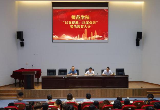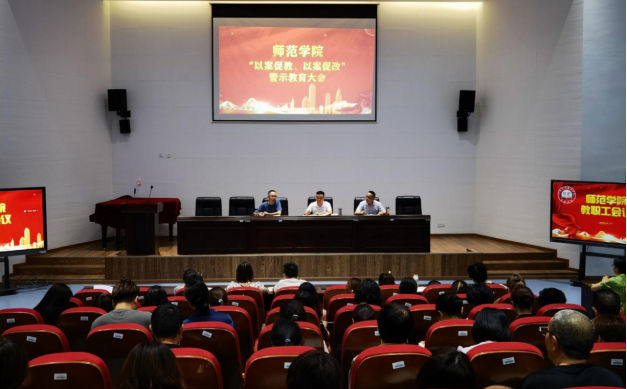 2023年9月19日下午,pp电子官方网站入口在翔凤厅召开以案促教、以案促改的警示教育大会。党总支书记彭松林主持会议,全体教职工参加会议。