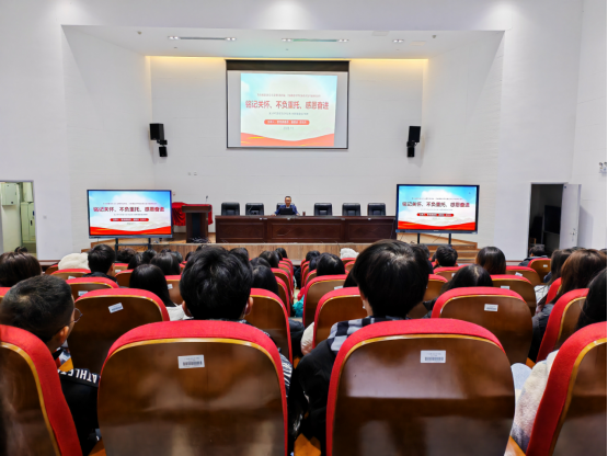 袁祖洪鼓励广大师生要知国情,晓时事,要加强政治理论学习,用习近平新时代中国特色社会主义思想武装头脑,要铭记关怀,不负重托,感恩奋进,为中国式现代化贡献智慧和青春力量。