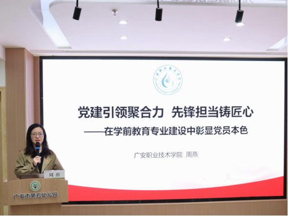 为深入贯彻落实习近平总书记系列重要讲话精神,创新党建工作机制,强化“红烛魂”党建品牌引领,11月3日,pp电子官方网站入口学前教育党支部与广安市第五幼儿园党支部、第六幼儿园党支部联合开展“院园党建共建”活动。