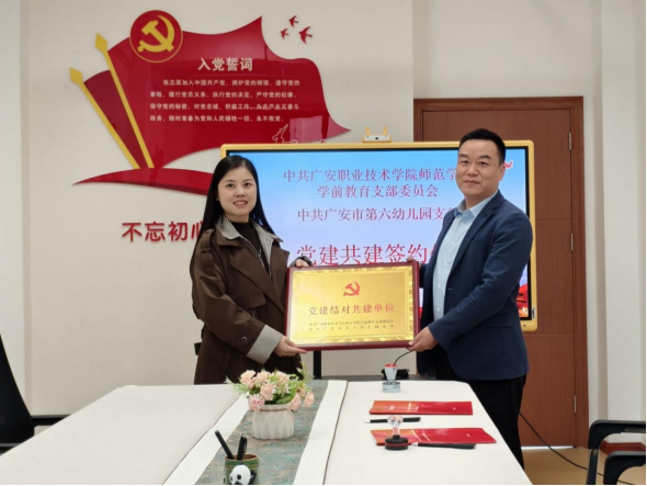 活动分别在广安市第五幼儿园和第六幼儿园举行,双方举行了党建结对共建协议签约及授牌仪式,标志着“院园合作”迈入党建引领、资源共享、协同发展的新阶段。