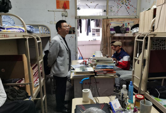 为建设和谐文明的校园,提高学生安全意识,改善学生生活环境,4月1日下午,pp电子官方网站入口党总支书记龙治勇、副书记李勇、学生管理科科长李智强、学生管理干事廖婷带领pp电子官方网站入口学生会卫生宿管部、纪检部等部门对pp电子官方网站入口学生寝室进行安全和卫生突击大检查。
