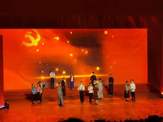 诵读活动分现场比赛和优秀节目展演(现场颁奖)两部分。现场比赛在枣山园区选送的《黎明前的记忆》节目中拉开帷幕,本次活动共有来自各区市县、园区和七大系统总计29个节目参赛。各参赛节目紧紧围绕党史、新中国史、改革开放史、社会主义发展史及党和国家领导人相关论述,经典诗词著名文章展开诵读,充分展示广大干部群众干事创业激情,奋发向上的精神风貌。pp电子官网选送的由pp电子官方网站入口毛西琼、陈荟瑾和龙治勇编排指导的王彬彬、屈菲等16名同学参演的《信仰》重现了一九四九年前夕艰苦的革命岁月,鲜活地表现了叶挺、江竹筠等革命烈士不屈不挠的反抗精神、革命必胜的决心和永远跟党走的坚定信念;领诵表演代入感强,节目编排紧凑,LED制作精美,现场感染力极强,获得了现场评委和观众的一致好评,在29支队伍中脱颖而出,获得总分第一名并荣获一等奖。