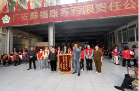 走进养老院,一部分志愿者忙着整理活动所需的服装和礼品,一部分志愿者就走到老人身边和老人聊天、帮他们剪指甲、捶背等,老人们脸上都洋溢着幸福的笑容。随后志愿者们向老人们奉献了精彩的文艺节目,唱歌、跳舞、互动游戏让老人们高兴得合不拢嘴。有一些老人也兴致勃勃的拿起话筒和志愿者们一起唱起来。活动结束后,蘇福养老院的工作人员向pp电子官方网站入口献上了锦旗。