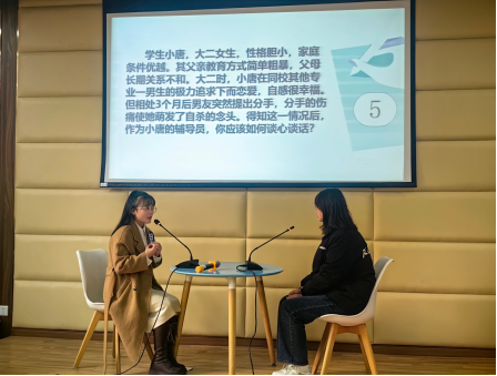 本次比赛由校学生工作部主办,经过笔试选拔初评,共有10名辅导员进入决赛。决赛全面对标省赛新赛制,分为案例研讨、谈心谈话两个环节,聚焦辅导员理论水平、职业能力和专业素质,综合考察辅导员的分析、判断、应变、协调、沟通等素质能力。