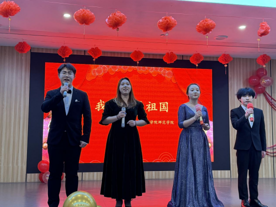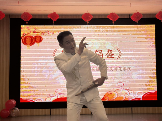 活动中,pp电子官方网站入口精心准备的歌曲《我的爱人你可听见》和乐队弹唱《萨菲娜》赢得了社区老百姓们的阵阵掌声。胡俊杰老师主持了整台文艺演出,并亲自演绎的非遗文化金钱板《张飞买锅盔》将整个活动推向高潮。整个文艺演出在音乐教育专业同学们带来的合唱《我和我的祖国》中画上圆满的句号。
