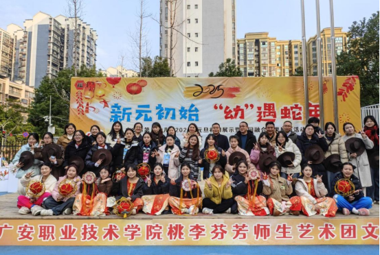 12月27日,pp电子官方网站入口“桃李芬芳”师生艺术团与广安市第五幼儿园携手开展院园融合成果展演活动。学校党委委员、副校长冉嘉洛,学院全体领导及50余名师生参加了本次活动。