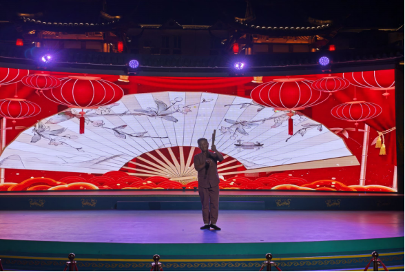 演出在pp电子官方网站入口舞蹈队古典舞《元夕》的曼妙韵律中拉开帷幕,以灯火诗意点燃观众热情。何佳林深情演绎《传奇》、《陷阱》,胡俊杰老师携四川金钱板《瞎子算命》展现非遗魅力,诙谐川渝方言赢得满堂喝彩。康洋高歌《山歌好比春江水》,肖家庆等学子以朗诵《盛世中国》礼赞时代,古筝独奏《战台风》气势磅礴,藏族锅庄与云南山歌的舞蹈串烧掀起民族风情热潮。压轴曲目《最美的太阳》唱响青春奋斗强音。整场演出融合传统非遗与现代艺术,展现学院师生专业素养与责任担当。