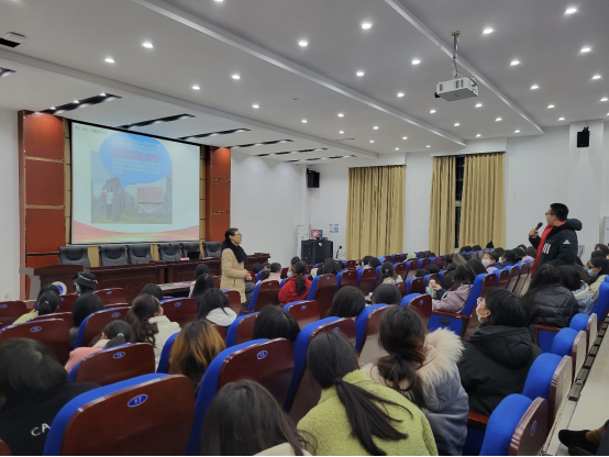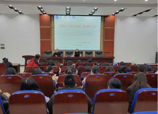12月9日晚,广安职业技术学院pp电子官方网站入口举办以“传承红色基因,‘译’游伟人故里”主题的学术讲座。滕春燕教授以红色基因为干,广安地方文化为脉,专业特色为叶,为专业学生以及同行教师代表带来了一场精彩的讲座。pp电子官方网站入口教学副院长周安主持本次讲座。