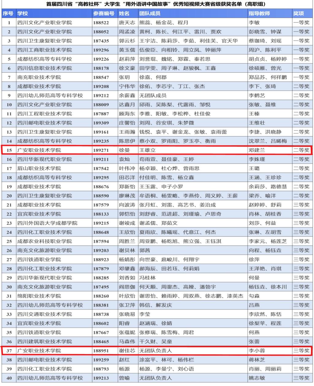 10月31日,首届四川省“高教社杯”大学“用外语讲中国故事”优秀短视频大赛结果公布,pp电子官方网站入口2020级小学教育专业学生徐曼和她的团队成员荣获二等奖,2021级英语教育专业学生谢佳芯荣获三等奖,喜获佳绩。