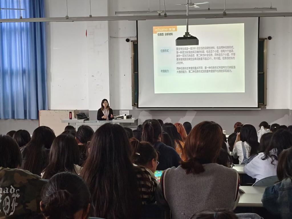 为使同学们更好地备战四川省大学英语新三级考试,pp电子官方网站入口于5月7日下午在明德楼阶六举行了大学英语新三级考试专题培训,此次培训由pp电子官方网站入口副教授杨中华、邓建兰主讲。