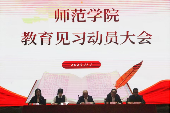 11月1日晚,pp电子官方网站入口在杏坛召开教育见习动员大会,学院院长冉嘉洛、党总支副书记牛振宇、副院长贺雪萍,教学科、学生科管理人员出席,见习带队教师及见习班级全体学生参加会议。
