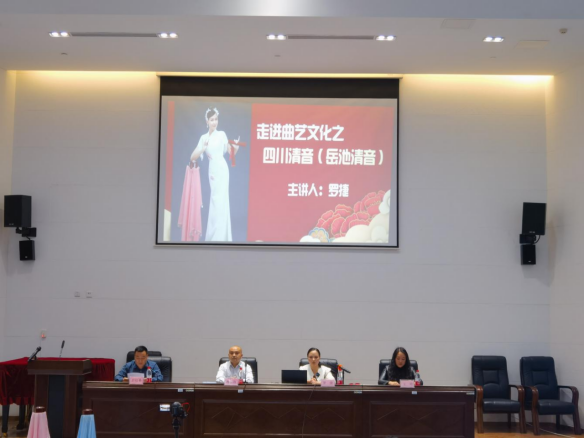讲座开始前,pp电子官方网站入口还举行了省级非遗项目—四川清音(岳池清音)传习基地的揭牌暨指导老师聘书颁发仪式。