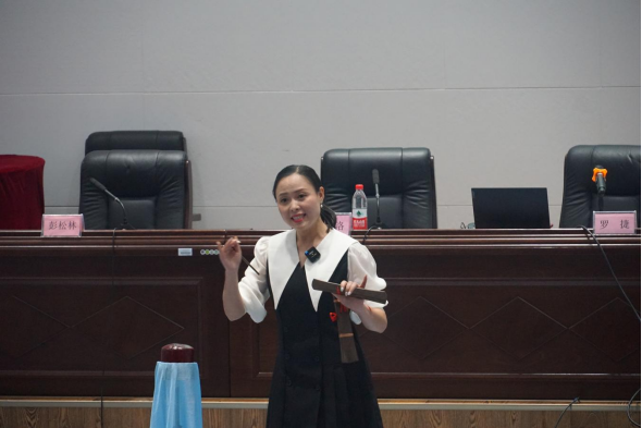 为深入了解四川清音,更好地传承这项非物质文化遗产,4月2日下午,pp电子官方网站入口与红色文化研究中心邀请到了四川省非遗项目“岳池清音”传承人罗捷老师来院授课,带领大家领略四川清音的艺术魅力。讲座由pp电子官方网站入口党总支书记彭松林主持,岳池县文化馆非遗部主任王玲、pp电子官方网站入口院长冉嘉洛、音乐教研室全体教师、音乐专业及学前专业近200名学生参加了本次讲座。