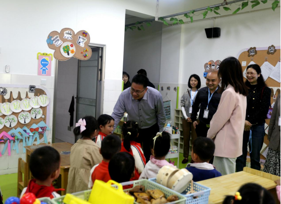 在调研现场,王义全一行深入幼儿园,实地察看了前锋区代市第二幼儿园、广安区两路口幼儿园、广安市加德学校幼稚园、广安市第五幼儿园的园所环境、硬件设施和各功能室的设置与使用等情况。调研组详细查看了园所的户外游戏场地、楼廊文化、活动室,深入班级近距离观察幼儿游戏,全面了解其办园理念、特色活动开展等情况。