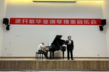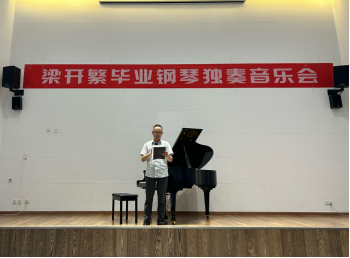 本场音乐会聚焦于中国钢琴作品,精心挑选了一系列经典与创新并蓄的曲目。从《牧童短笛》中贺绿汀开创的鲜明中式风情,到《谷粒飞舞》里孙以强融合传统与现代的巧妙构思,再到《南海小哨兵》储望华笔下海边儿童的积极形象,梁开繁同学以娴熟的技巧倾情演绎,深情地传达了每首作品背后的情感与力量,引领听众在旋律的起伏中感悟中国钢琴音乐的深厚底蕴与独特美学,加深了对中华优秀传统文化价值的认同感和自豪感。学院副院长周安在致辞中指出,这场音乐会既是学生个人才华的精彩展示舞台,也是学校艺术教育实践与教学相长理念的鲜活例证,同时也彰显了教育成果对师生共同努力的深情回馈。