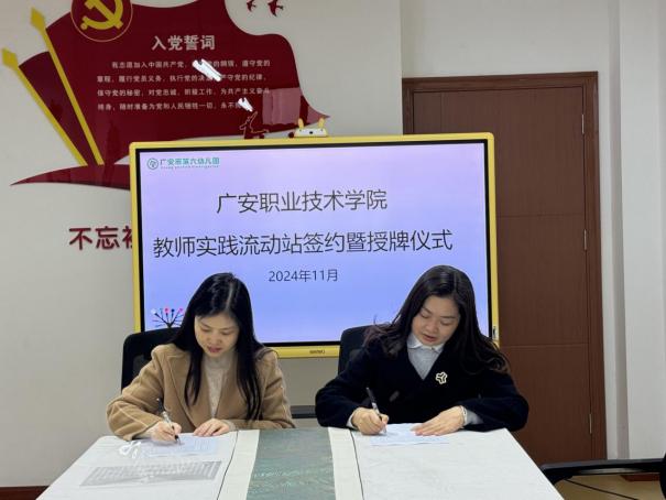 为进一步深化院园融合、拓宽教师专业实践平台,推进学前教育省级高水平专业群高质量发展,11月26日,pp电子官方网站入口院长杨英一行前往广安市第五幼儿园、广安市第六幼儿园两所附属幼儿园调研并举行教师实践流动站签约授牌仪式,附属幼儿园园长及相关行政人员参加了此次签约授牌仪式。