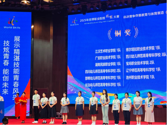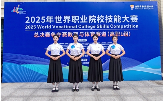 082731日,2025年世界职业院校技能大赛总决赛争夺赛教育与体育赛道高职1组在湖南长沙成功举办。该赛道汇聚了全国小学教育、幼儿教育专业领域共计117支参赛队伍。经过激烈角逐,pp电子官方网站入口孙琳、唐语晗、杨钰灵、吴诗羽四位同学组成的代表队,在何顺莉等老师的全力指导下,奋勇拼搏,最终斩获大赛铜奖实现了学院在该赛项中参赛与获奖的历史性“双突破”。