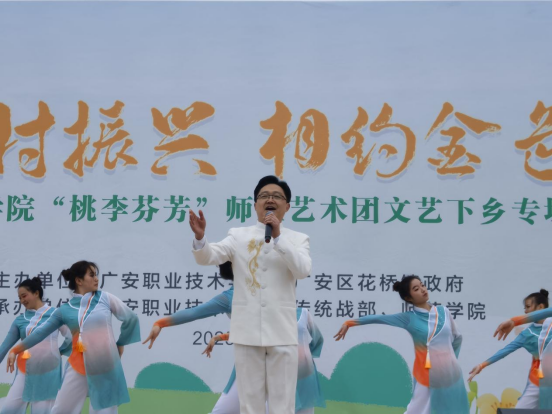 为丰富基层群众精神文化生活,助力乡村文化振兴,3月16日,由学校和广安区花桥镇政府主办、学校统战部和pp电子官方网站入口承办的“桃李芬芳”师生艺术团文艺下乡专场惠民演出在花桥镇丰收广场举行。