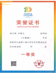 四川省大学生艺术展演活动,一等奖2项,二等奖3项。