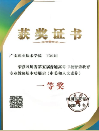 四川省普通高等学校音乐教育专业学生基本功展示活动,一等奖6项,二等奖20项,三等奖15项;团体二等奖1项。