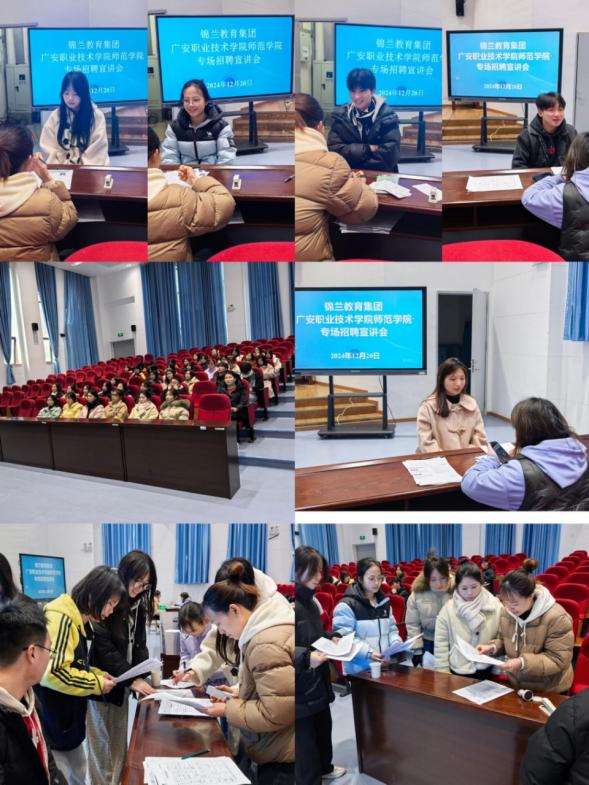 为有效促进pp电子官方网站入口2025届毕业生就业,实现人岗精准对接,深化校企合作,12月20日,我院邀请了锦兰教育集团在翔凤厅举办了2025届毕业生就业宣讲及专场招聘会。2025届学前教育和早期教育专业毕业生参加了本次活动。
